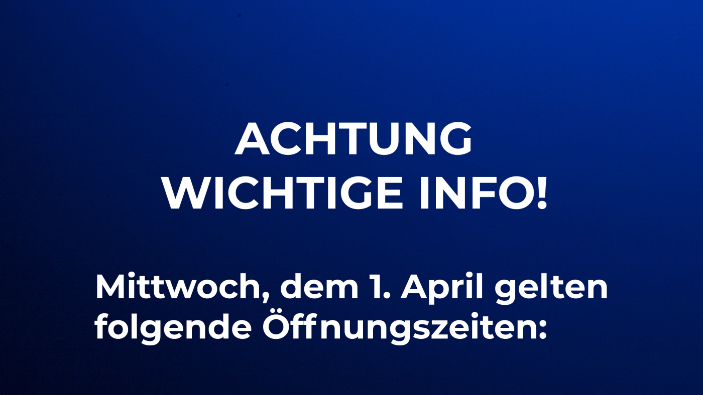 Am 1. April haben wir folgende Öffnungszeiten: