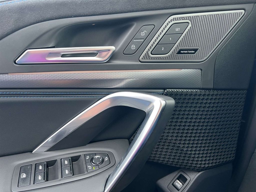 - Sitzbezug / Polsterung: M Alcantara / Veganza Kombination (Schwarz mit blau Kontraststeppung)