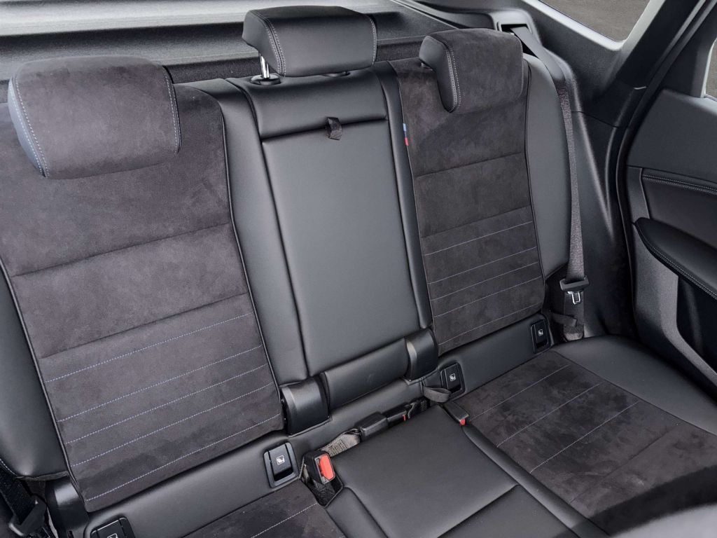 - Sitzbezug / Polsterung: M Alcantara / Veganza Kombination (Schwarz mit blau Kontraststeppung)
